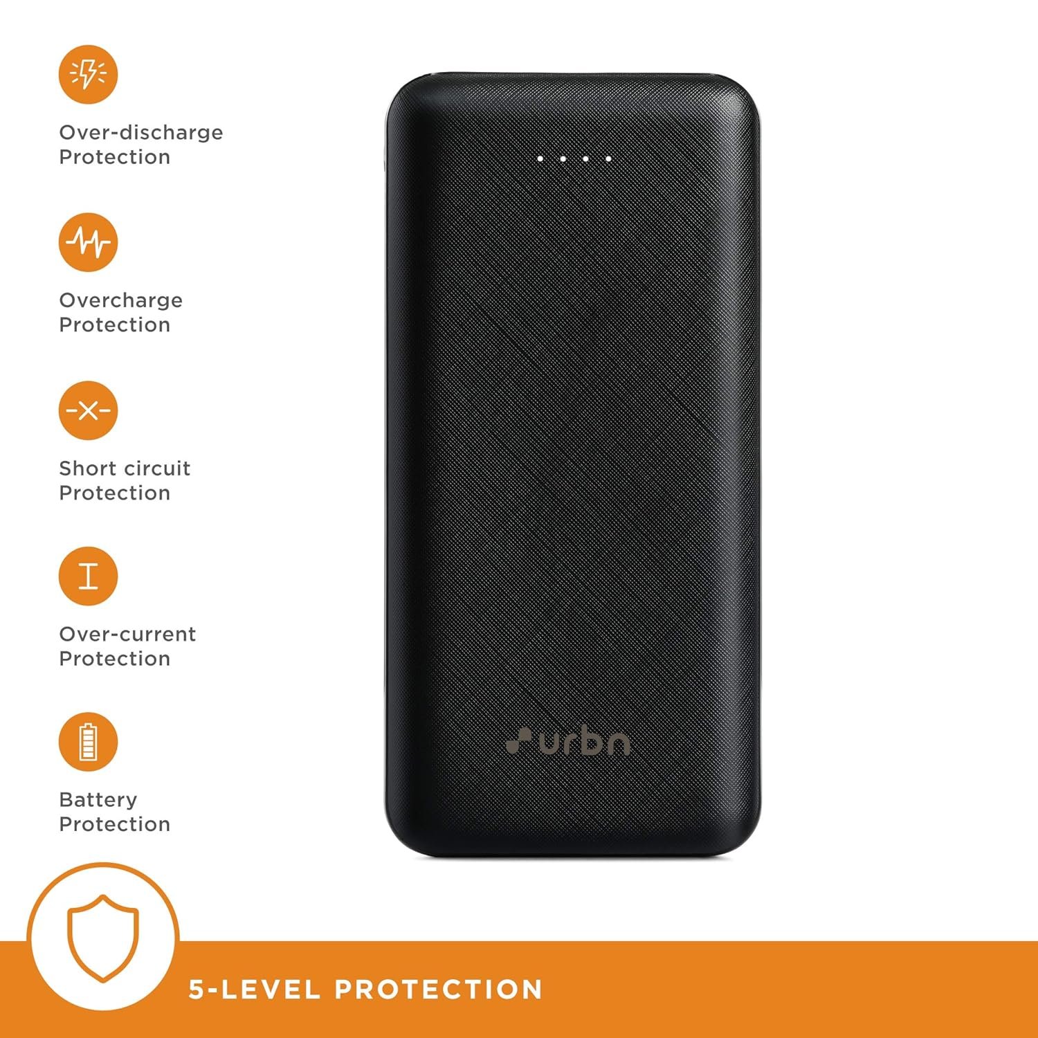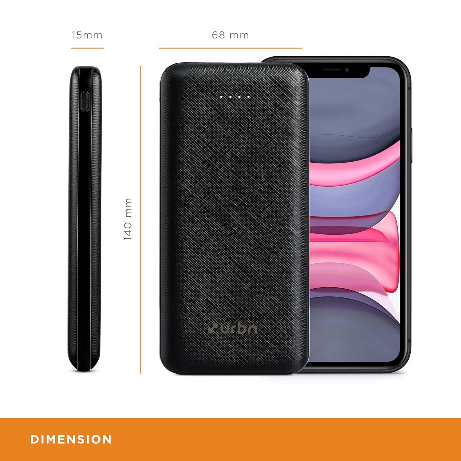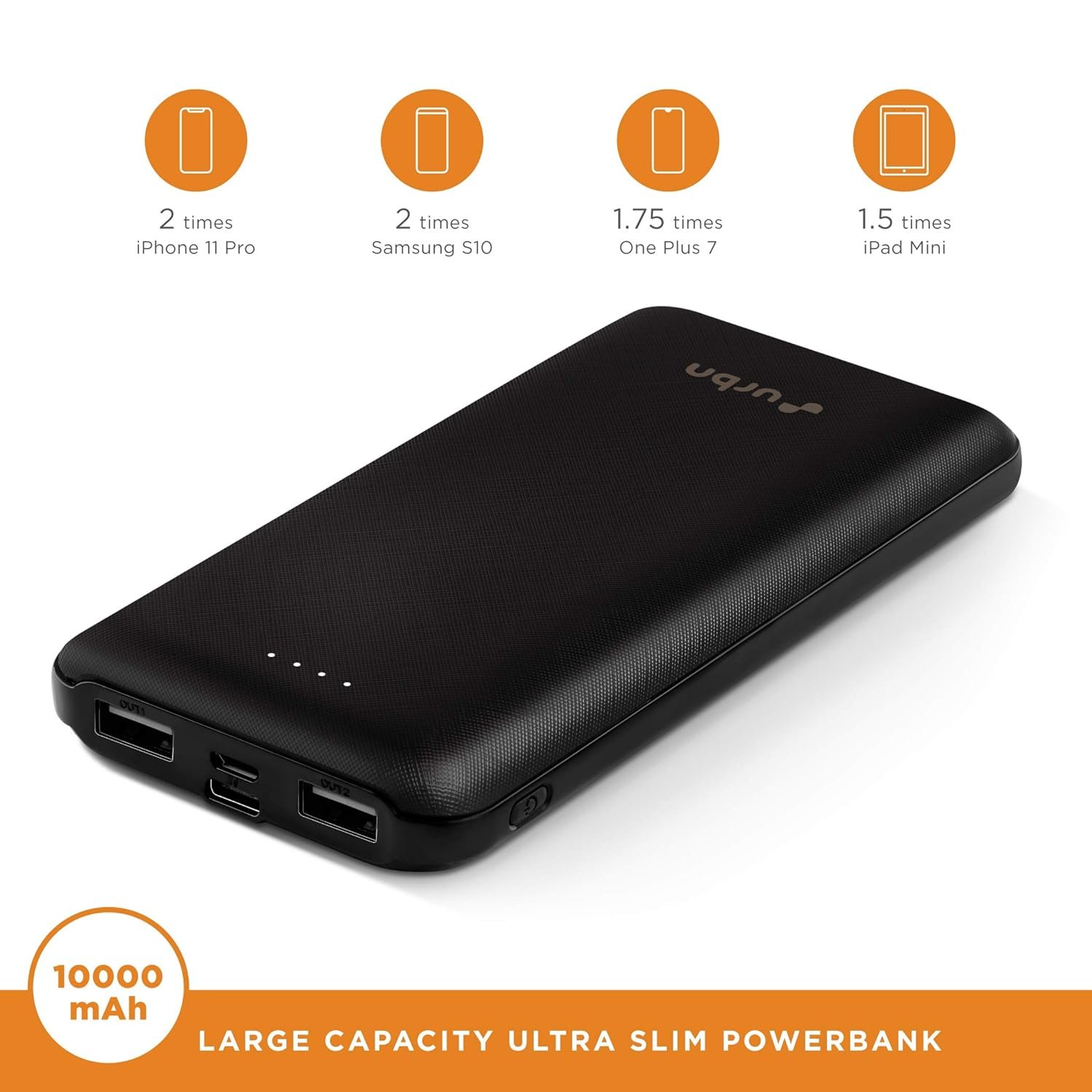 URBN 10000mAh Lithium Polymer Power Bank Ultra Compact with 12 Watt Fast Charging, (Black)