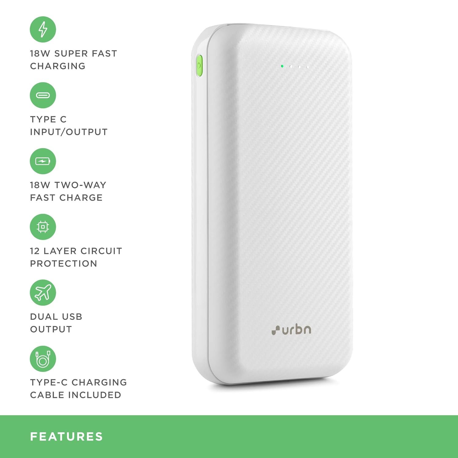he URBN 10000 mAh lithium-polymer Power Bank with 20 Watt Super Fast Charging is a true lifesaver for anyone who values their mobile devices and the need for power in our fast-paced, connected world. This sleek and powerful power bank has quickly become an indispensable part of my daily life, and here’s why it deserves a five-star rating:First and foremost, the 10,000 mAh capacity is a game-changer. In a world where our smartphones and gadgets are our lifelines, having a reliable power source is essential. This power bank provides ample juice to keep your devices charged throughout the day, no matter where you are.The super-fast charging capabilities are a standout feature. With a 20 Watt output, this power bank can quickly and efficiently charge your devices, saving you valuable time. Whether you need to power up your smartphone, tablet, or other gadgets, you can count on this power bank to do it in a flash.The build quality is exceptional. The power bank feels sturdy and well-constructed, designed to withstand the rigors of daily use and travel. It’s sleek and compact, slipping easily into your pocket or bag without adding bulk. The black finish adds a touch of elegance to your tech accessories.The compatibility is versatile. Whether you’re an iOS or Android user, this power bank has got you covered. It works seamlessly with a wide range of devices, ensuring that you can rely on it for all your charging needs.Safety features are a priority. The power bank includes safeguards against overcharging, short-circuiting, and overheating, ensuring that your devices remain protected while charging. It’s peace of mind that you can’t put a price on.The LED indicators on the power bank provide real-time information about the remaining charge, so you always know when it’s time for a recharge. This convenience is particularly valuable when you’re on the go and need to plan your device charging accordingly.In summary, the URBN 10000 mAh Power Bank with 20 Watt Super Fast Charging is a must-have for anyone who values their mobile devices and demands fast and reliable power on the go. Its generous capacity, lightning-fast charging, portability, and safety features make it an unbeatable choice. Whether you’re a traveler, a professional, or simply someone who values staying connected, this power bank is a five-star addition to your tech essentials, ensuring that you’re always powered up and ready for whatever comes your way! 📱🔋🌟