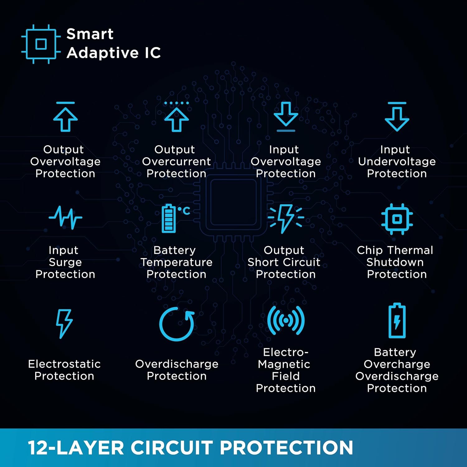 Advanced Circuit Protection: With 12 layers of circuit protection, this power bank offers complete safety and protection for your devices. Enjoy peace of mind knowing your devices are protected against overcharging, overheating, and other potential hazards.