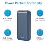 Massive Power on the Go: Stay connected longer with the URBN 20000mAh power bank, delivering enough juice to charge your iPhone 16 up to 4.2 times, OnePlus 12R 2.8 times, Samsung S24 3.7 times, and even an iPad Mini 3 times.