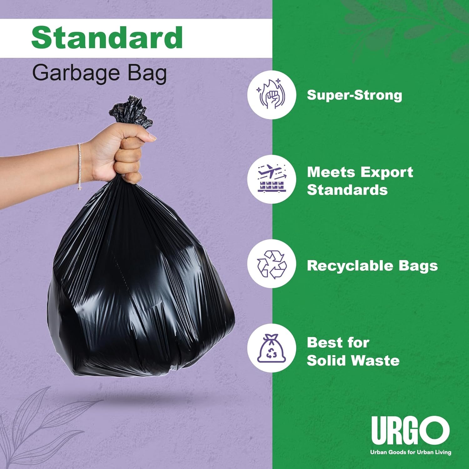 Introducing URGO’s Premium Garbage Bags, made from high-quality, recyclable plastic. These bags are designed to be exceptionally strong and leak-proof, providing reliable containment for all your waste. With a focus on durability and environmental responsibility, URGO’s garbage bags help you keep your surroundings clean and green. Perfect for both household and commercial use, these premium garbage bags are a step towards a cleaner, more sustainable future.