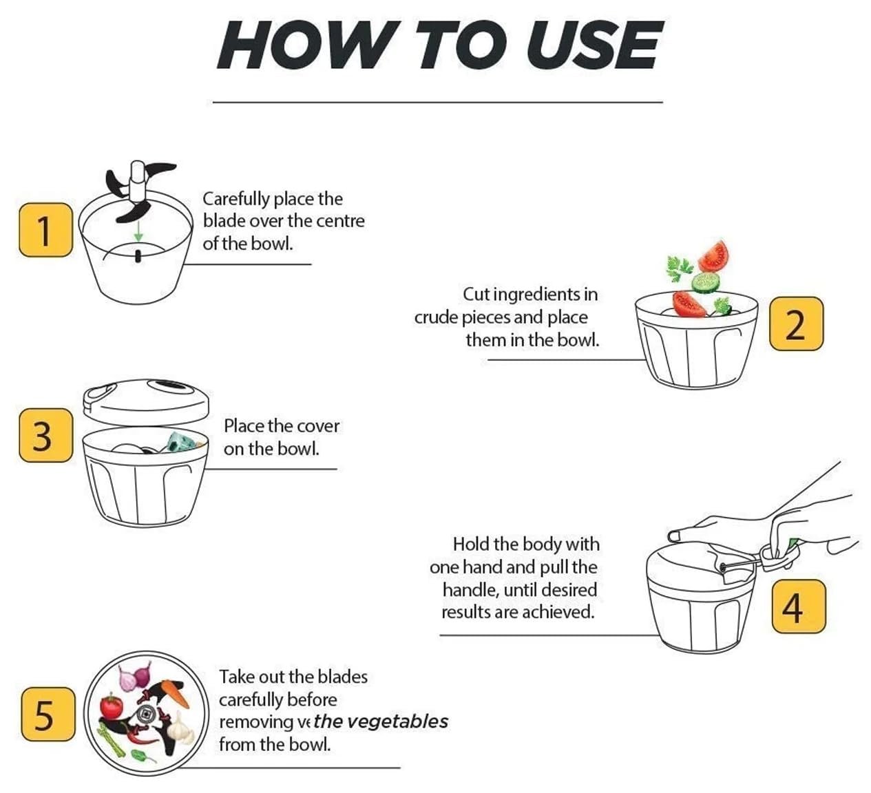 Convenient: Makes food preparation fun and easy. Just pull the cord a few times to to chop/mince/blend your ingredients.