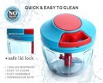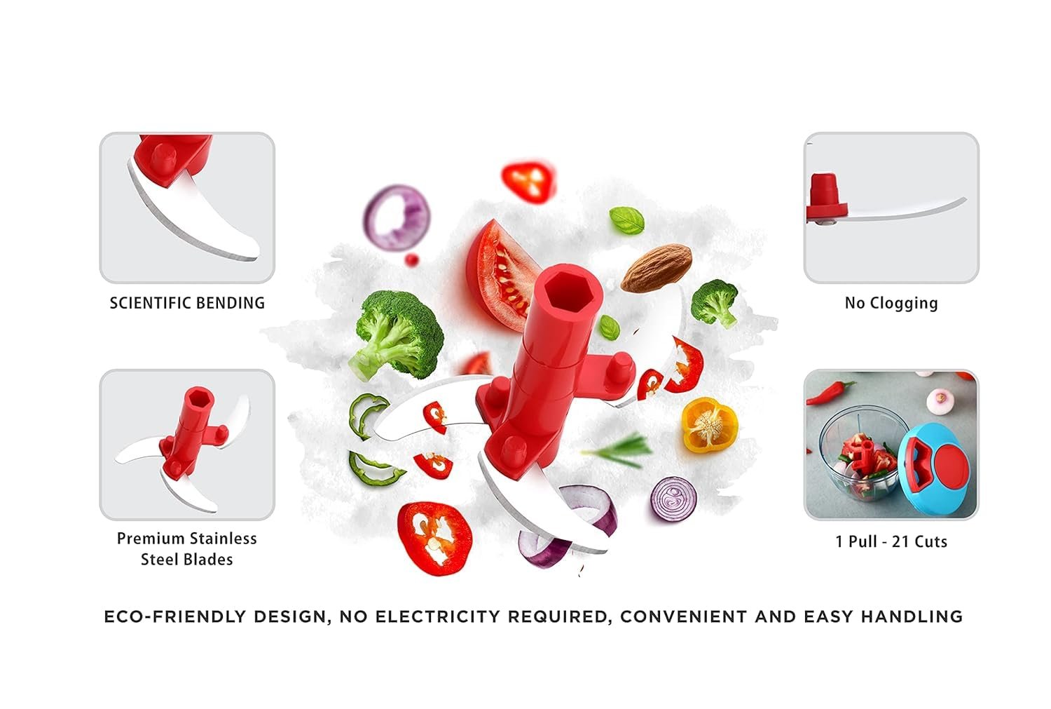 Vegetable & Dry Fruit Handy Chopper 450ml – Mini Manual Cutter with 3 Steel Blades for Onion, Garlic, Fruits, Whisking & Multipurpose Kitchen Use (Sky Blue & Red)