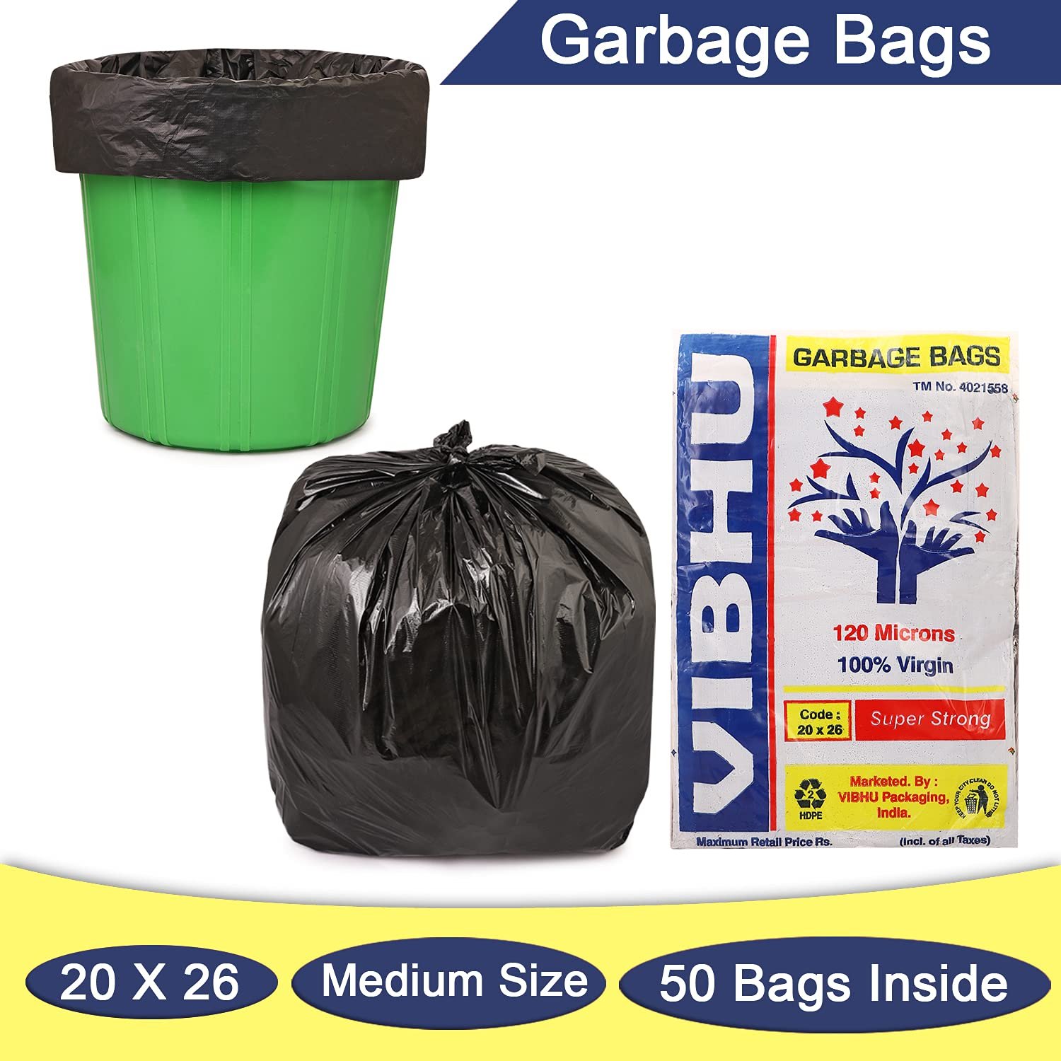 VIBHU Plastic Dustbin Bag (Black,)- Pack of 50 (Medium)…