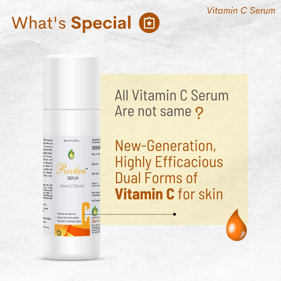 Vitamin C Booster Face Serum, 30ml | Glowing Skin, Reduces Wrinkles, Fine Lines, Dark Spots, Sunburn, Blemishes | With Vitamin E, Papaya, Orange, Hyaluronic Acid & Olive Oil | For Men & Women