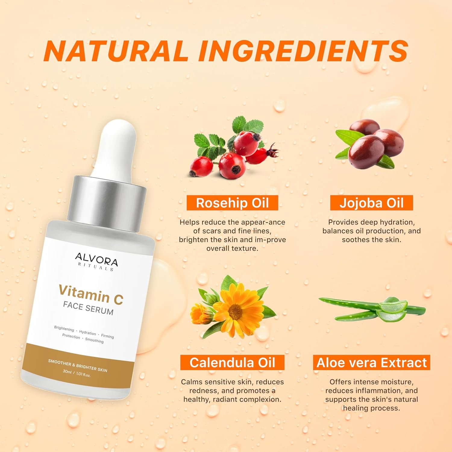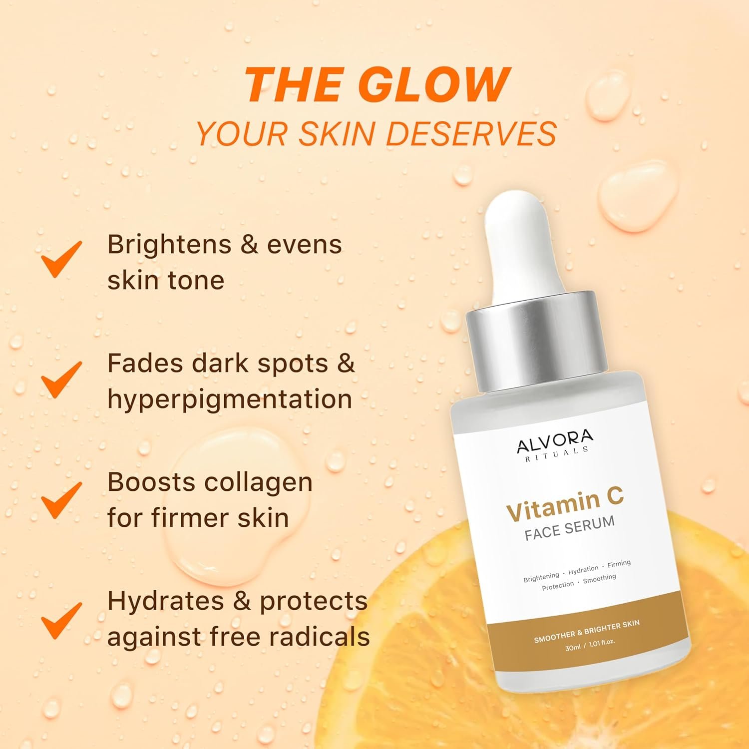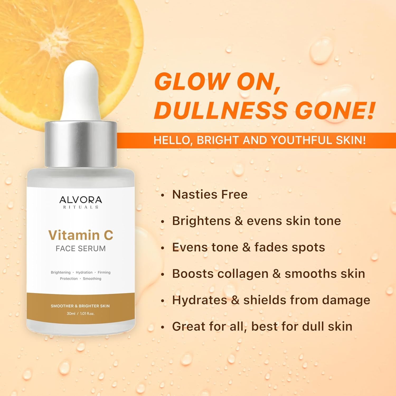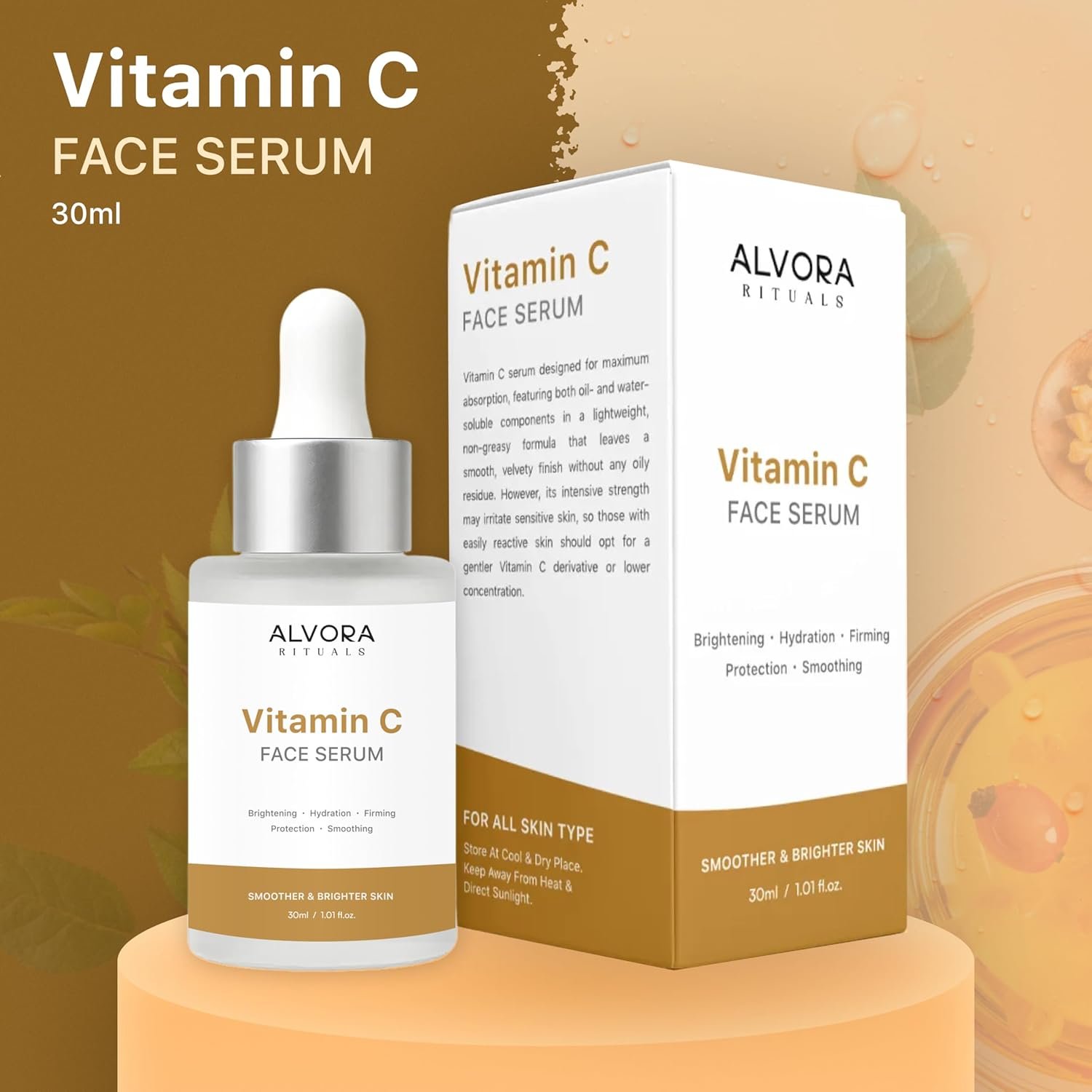 Vitamin C Face Serum 30ml for Glowing Skin, Brightening Dull Complexion, Reducing Dark Spots, Hydrating Skin, Improving Skin Texture for Men & Women