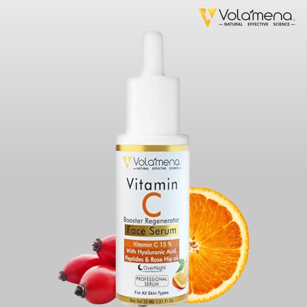 VOLAMENA vitamin c face serum is a cosmeceutical, wrinkle reducing, repairing, regenerating & anti-aging serum. This face serum boost collagen production in epidermis intense skin therapy based serum. Serum with vitamin c is a wonderful antioxidant which enhance repair of skin, boost collagen production. Hyaluronic acid maintains skin hydration and elasticity. Vitamin e, milk peptides & rose hip oil provides optimal nutrients to restore youthfulness, radiance, health and glowing skin.