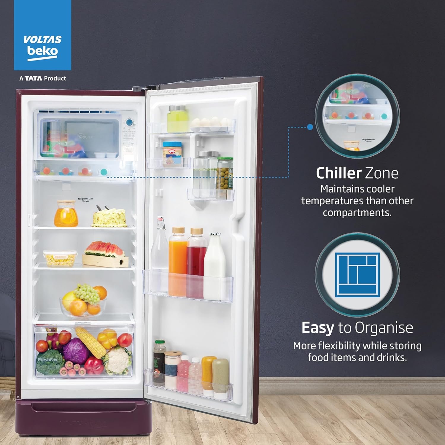 Voltas Beko, A Tata Product 183 L 5 Star Direct Cool Single Door Refrigerator (, RDC215A / W0VWR0M0B00GO, Vivi Wine, Base Drawer)