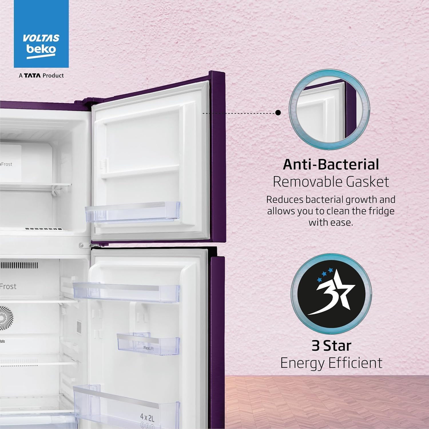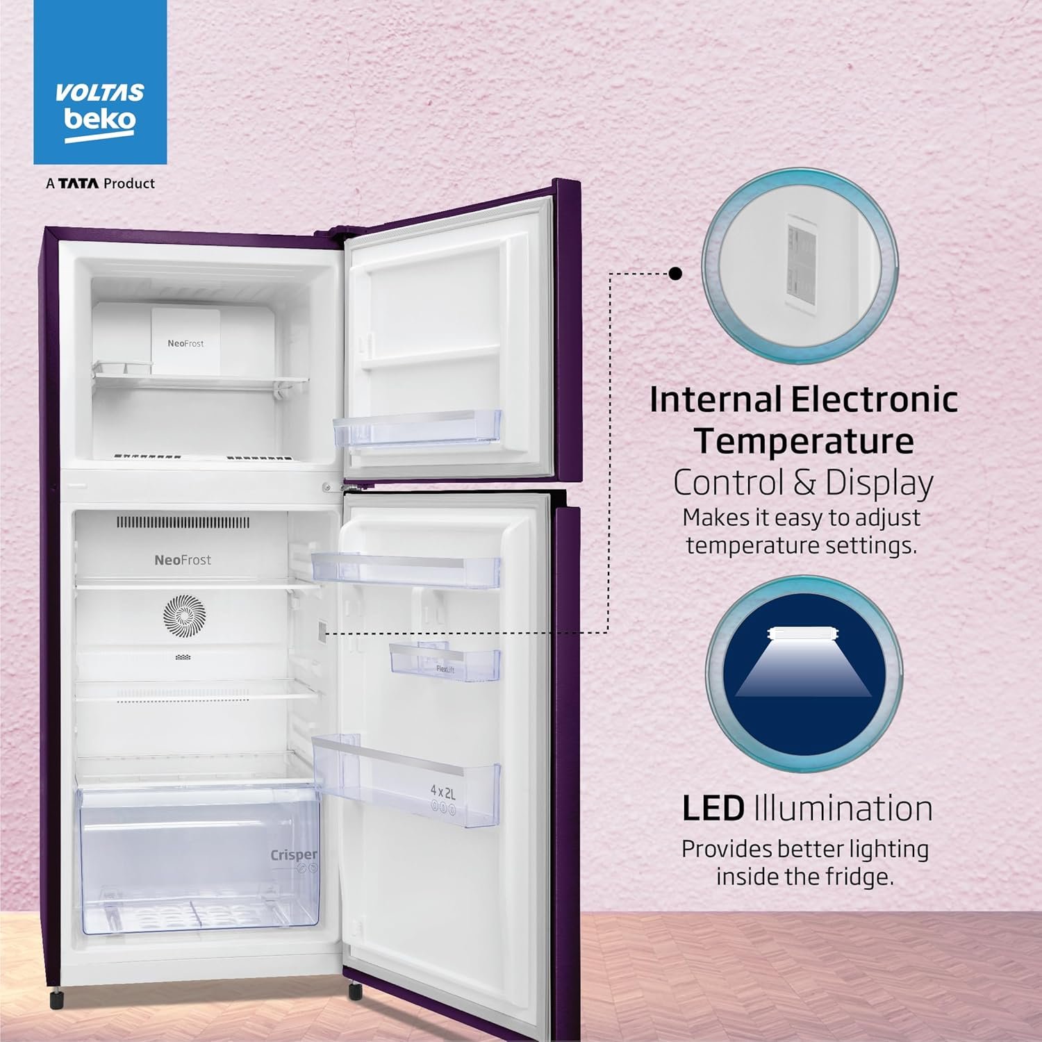 Voltas Beko ‘A TATA Product’ 228 L 2 star Frost free Refrigerator with two separate cooling system (RFF265D/W0NPR0I0000GO, Nightangel Purple)