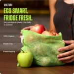 100% Natural Cotton: Crafted from high-quality, breathable cotton mesh, VOLTURI vegetable bag for fridge ensure optimal air circulation to keep your fruits and vegetables fresh longer.