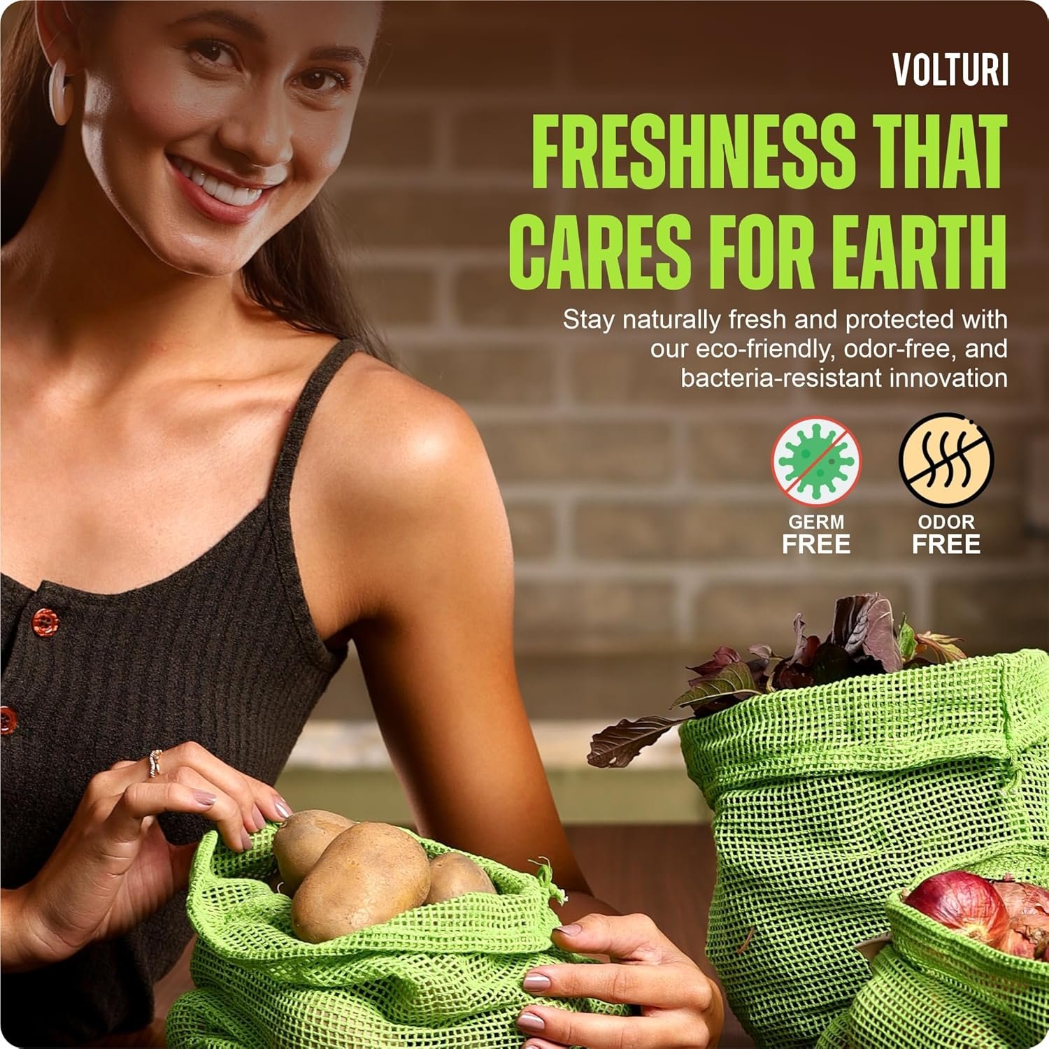 Convenient Drawstring Closure: Each VOLTURI vegetable storage bag features a sturdy drawstring closure, making it easy to secure and carry your produce. No more spills or messes in your fridge by using VOLTURI fridge storage bags.