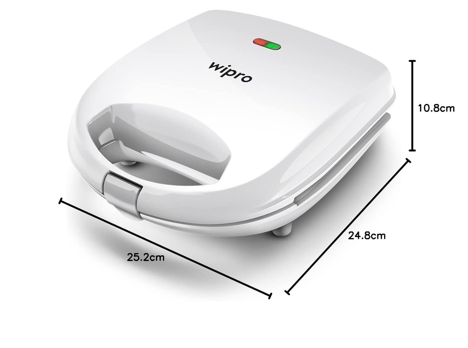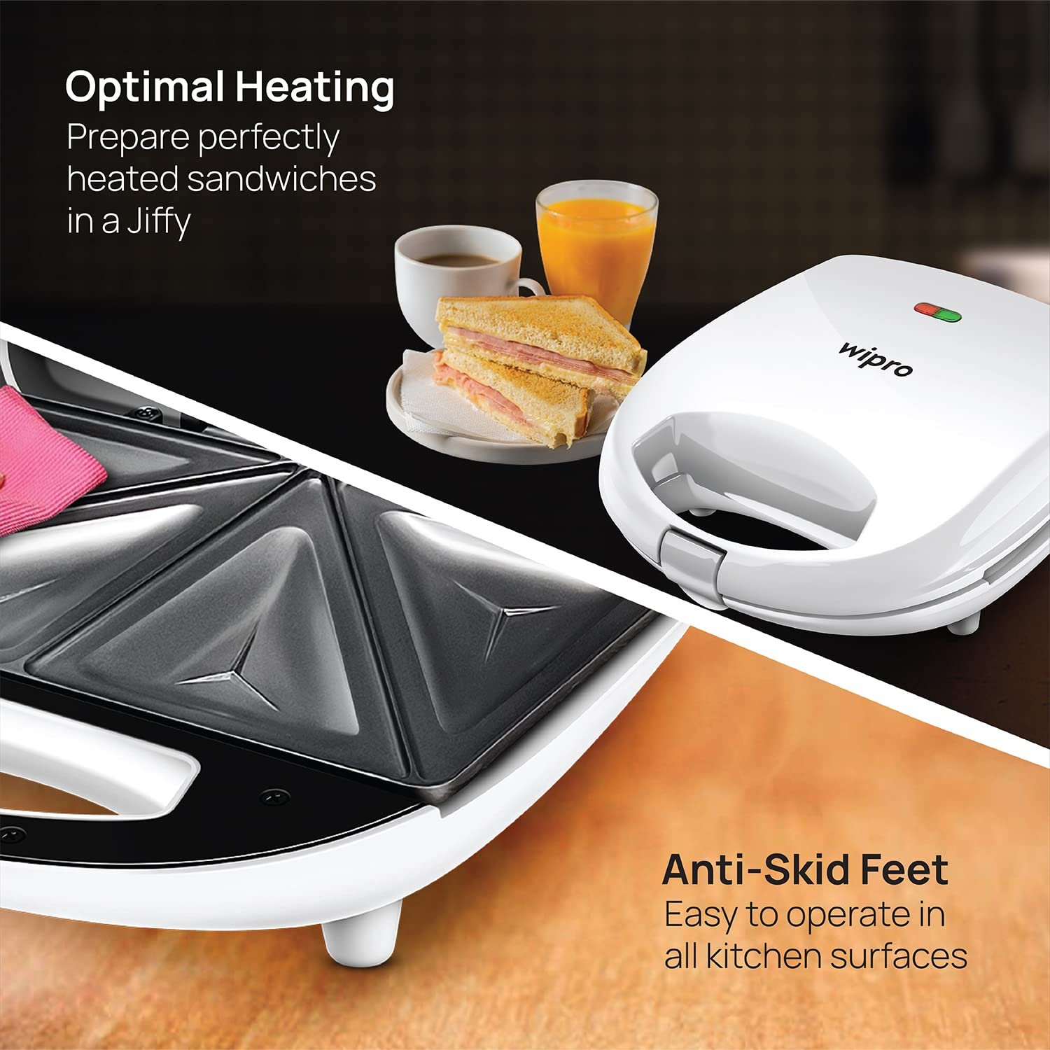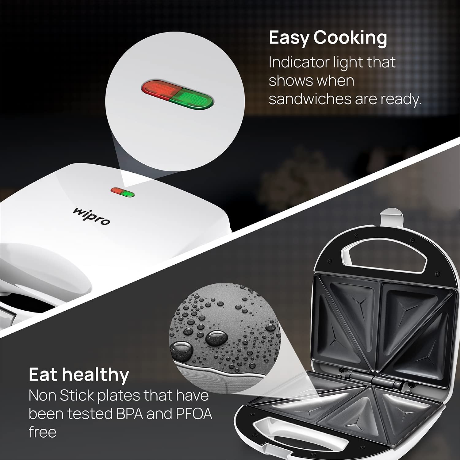 Wipro Vesta BS101 700 Watt Premium Sandwich Maker cum Toaster, White, Automatic Temperature Control, Smart LED Indicator, Non-stick-BPA& PFOA White,1 Year Warranty, Regular Bread Size for 2 Slices