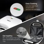 It’s a good sandwich maker. I gave one star less only because of the small size. Two regular size bread sandwiches fit in very tightly. It kind off hangs out a bit. A large sandwich bread will definitely not fit. That’s a drawback.Otherwise no other problem. Heats up fast, cooks fast. In many reviews I read that the auto off isn’t effective and it burns the food. So I have been alert while toasting and haven’t had a burnt food episode. Haven’t experimented leaving the sandwiches to grill and relying on auto off. Keep that in mind. I bought for 2199₹