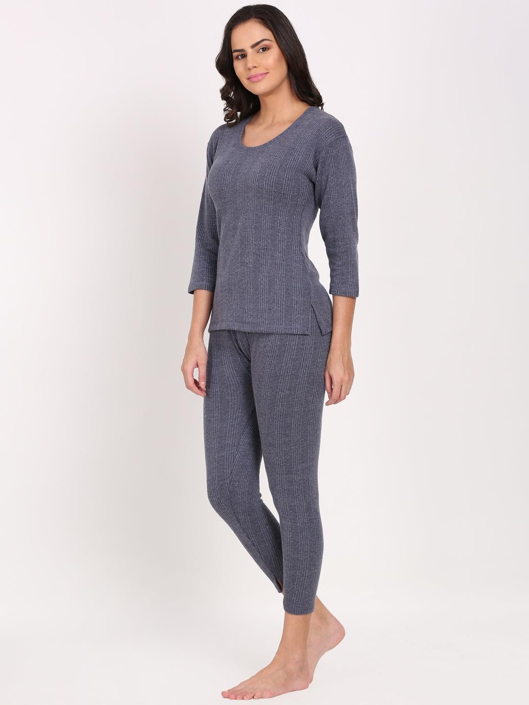 Women’s Solid Round Neck Full Sleeves Top and Trouser Thermal Set