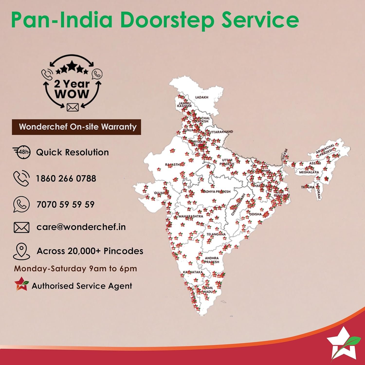 RELIABLE AFTER-SALES SUPPORT WITH 2-YEAR WARRANTY: Enjoy peace of mind with Wonderchef’s on-site service coverage across 20,000+ pin codes and a trusted 2-year warranty.