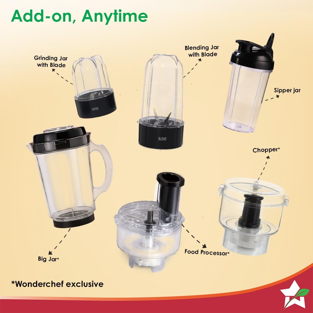 I am absolutely thrilled with my Wonderchef Nutri-blend Mist 500W! This mixer grinder blender has truly transformed my kitchen routine. The powerful 500W motor effortlessly handles everything from blending perfect smoothies and shakes to grinding tough spices for masalas and chutneys in seconds, living up to its 22,000 RPM promise.I especially love the unbreakable jars and super sharp, surgical-grade stainless steel blades that extract maximum nutrition, ensuring healthy and delicious results every time. The compact and stylish design, complete with the elegant black finish, adds a touch of sophistication to my kitchen counter without taking up much space. Plus, the included recipe book by Chef Sanjeev Kapoor has been a fantastic guide for exploring new and exciting recipes. It’s genuinely a joy to use daily, and I highly recommend it for anyone looking for a reliable, efficient, and stylish kitchen companion