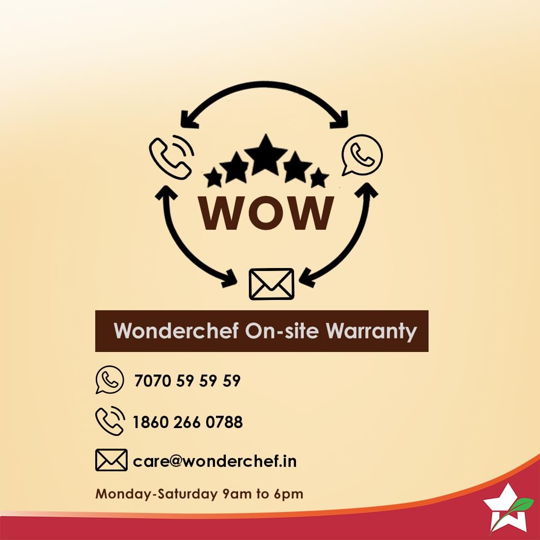 RELIABLE AFTER-SALES SUPPORT WITH 2-YEAR WARRANTY: Enjoy peace of mind with Wonderchef’s on-site service coverage across 20,000+ pin codes and a trusted 2-year warranty.