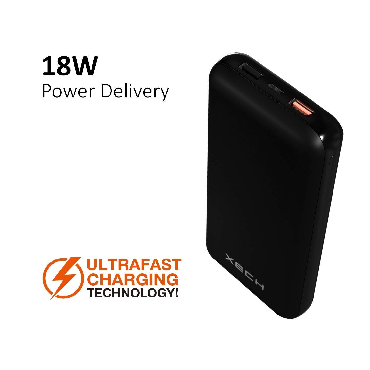 Xech CometX 20000mAh Power Bank is built with Qualcomm Quick Charge 3.0 Technology with the power of 3A Power Delivery. This is highlighted with an Orange Port.