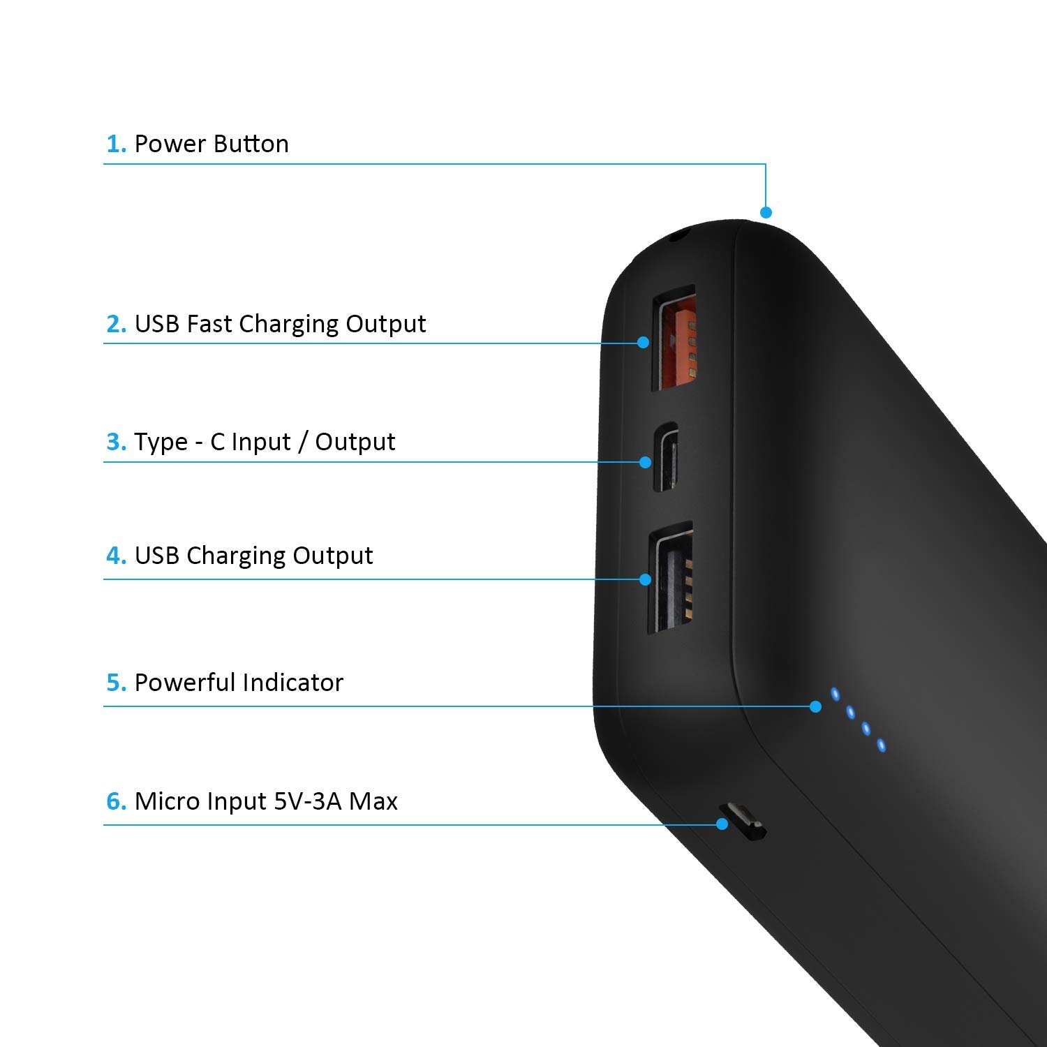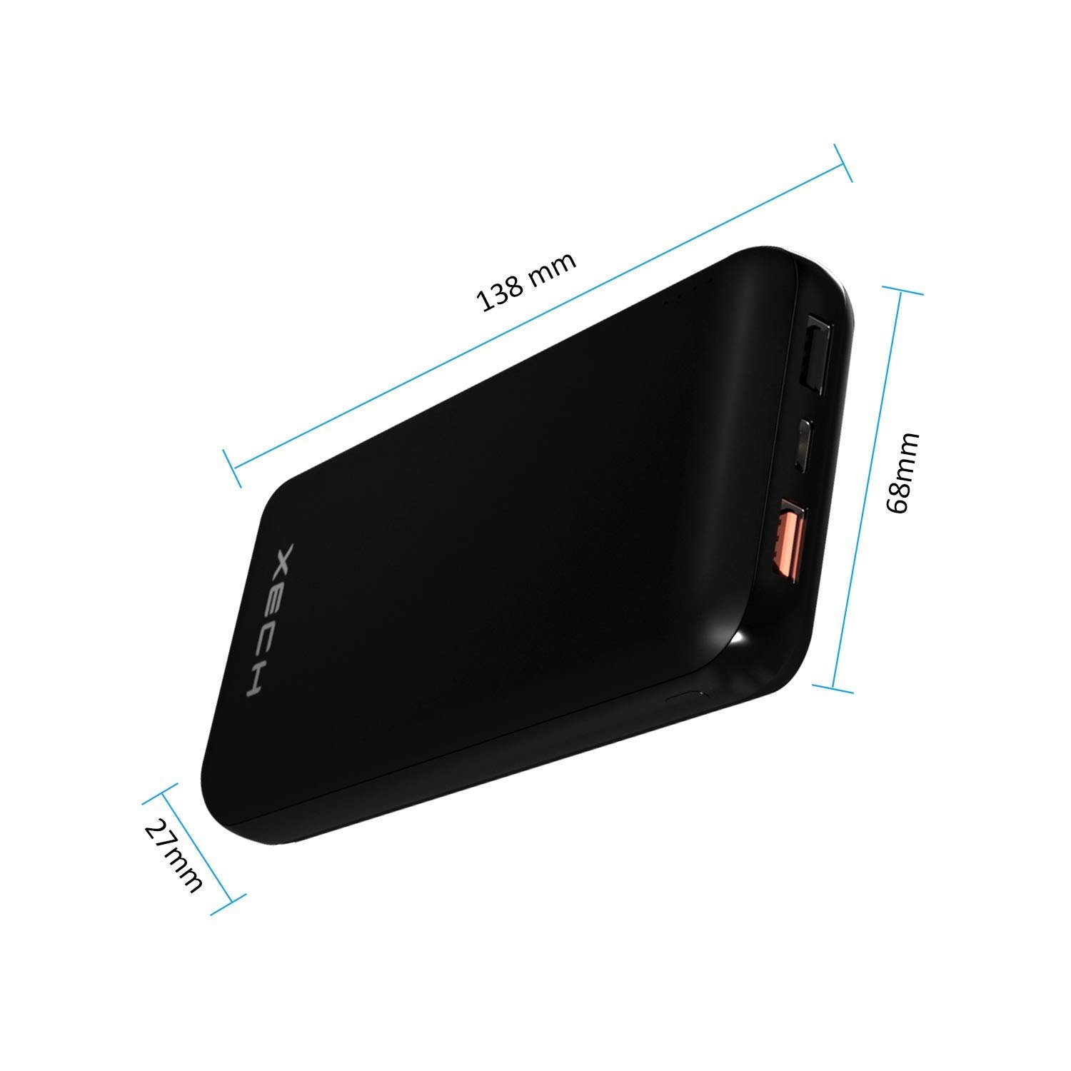 Xech CometX is a power bank with 20000mAh capacity with 3 Hyper fast USB Output ports. 1 at 5V at 3A Max & Two Type-C ports at 5V at 3.0A Max.