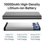 Durable Steel Casing – Strong, heat-resistant body for enhanced protection and long-lasting performance. 10000mAh High-Capacity Battery – Reliable lithium polymer battery offers efficient power delivery, providing up to 2 full charges for most smartphones while maintaining a compact form factor. Retains 80% capacity after 300 cycles of usage.