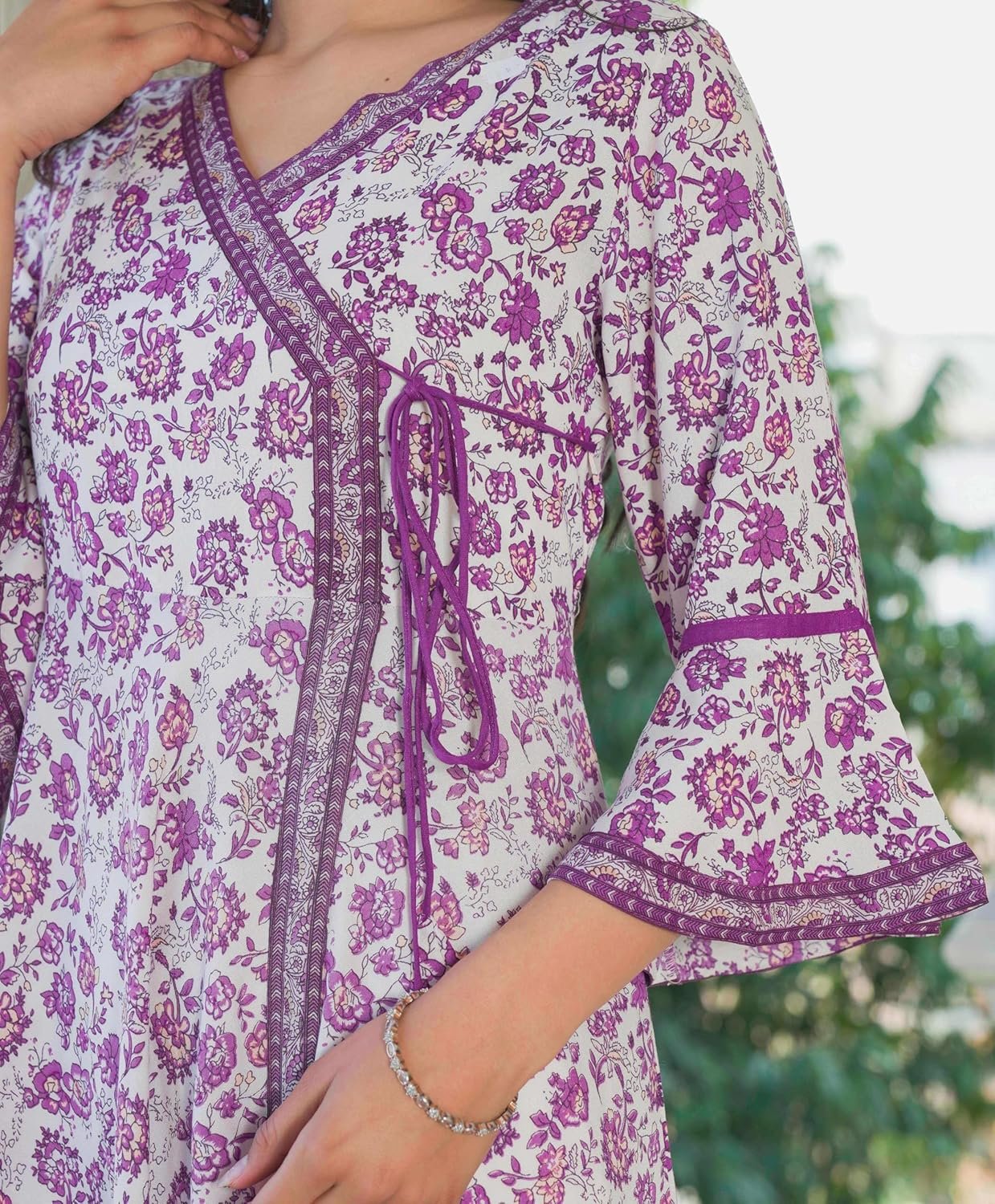 Key Features Bell Sleeve Floral Print 100% Rayon V-Neck