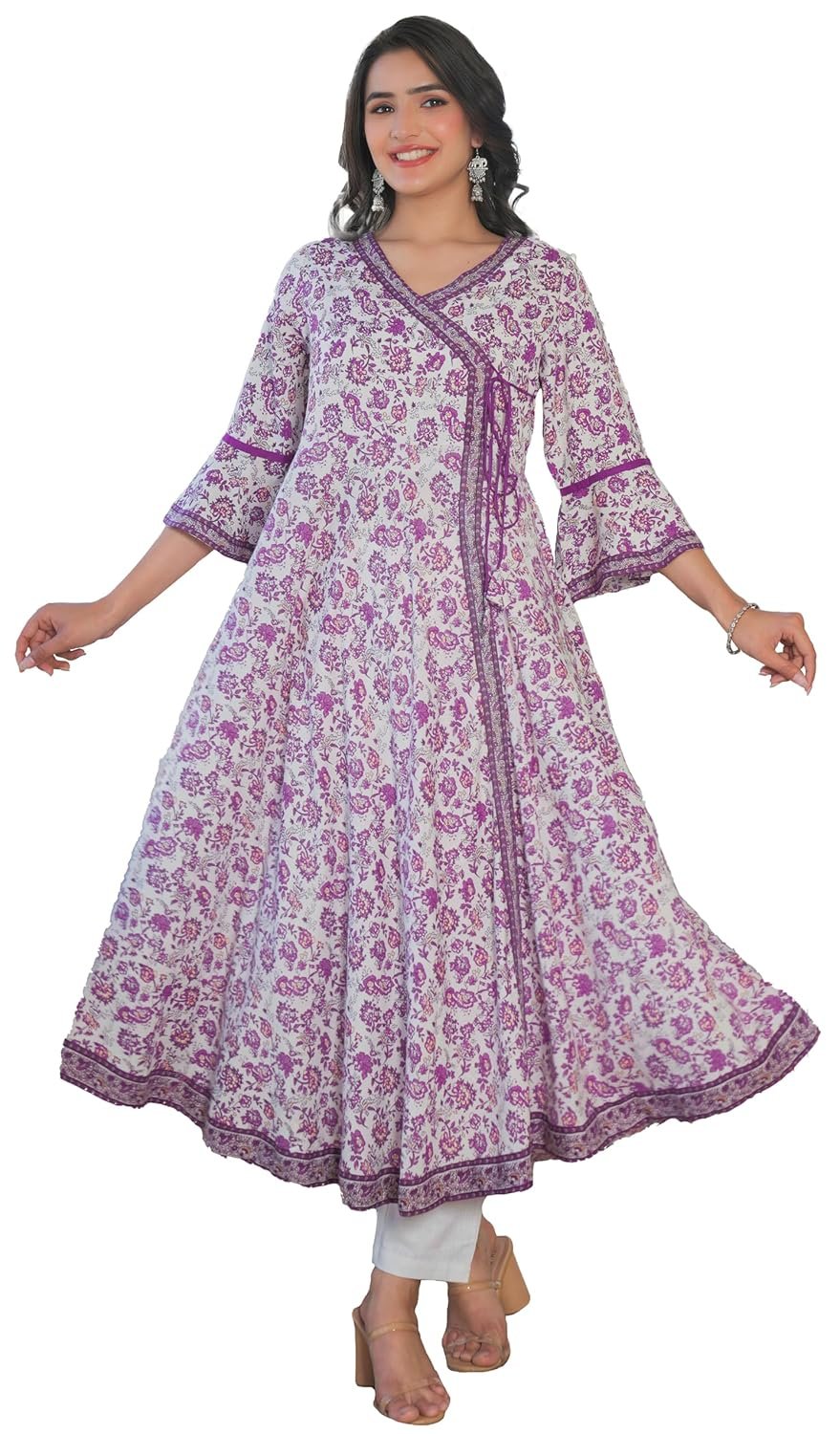 Yash Gallery Women’s Rayon Relaxed Fit Angrakha Plus Size Floral Printed Kurta