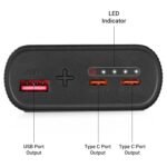 This power bank enables efficient multi-device charging with its dual Type-C and USB ports