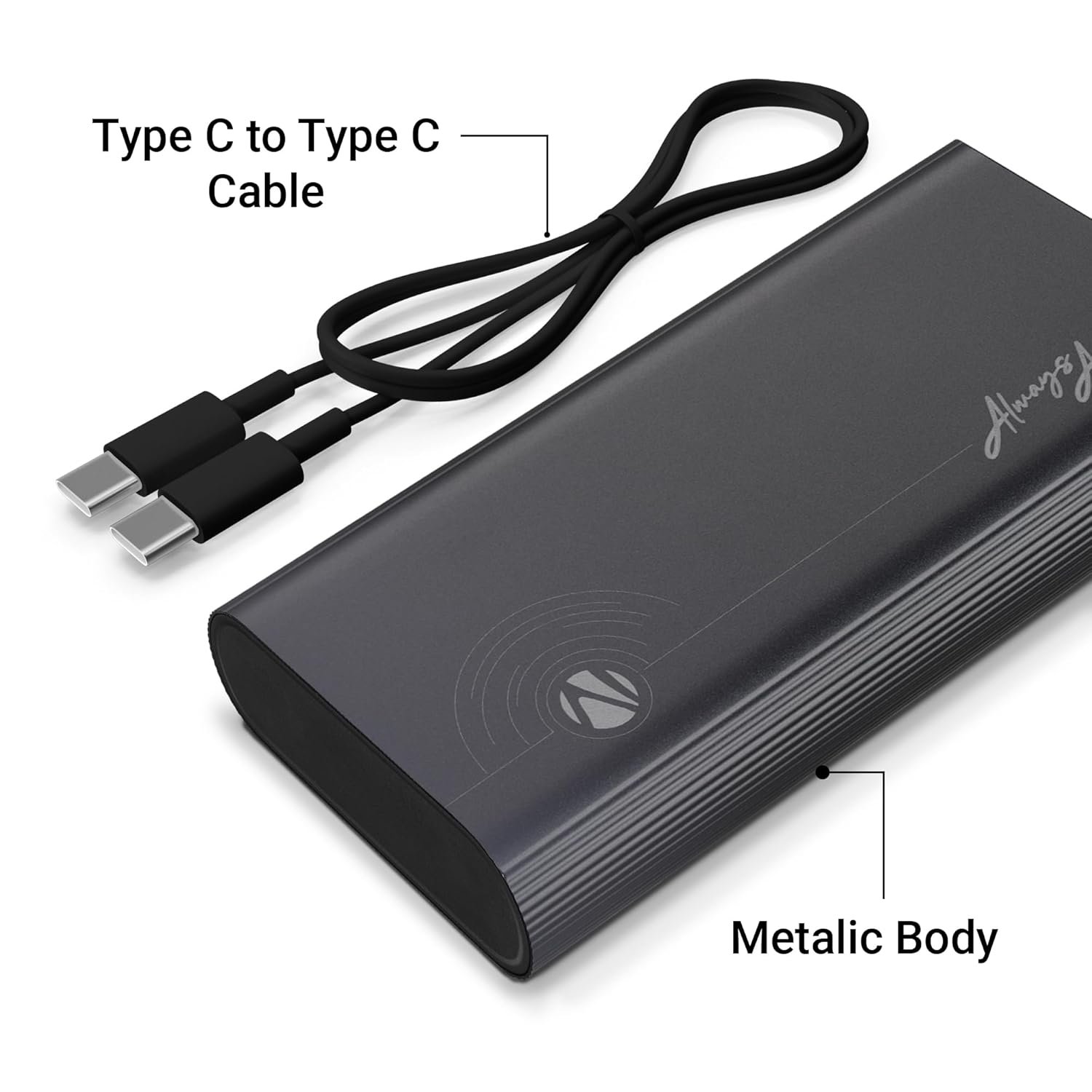 ZEBRONICS 20000 mAh Power Bank, 35W Fast Charging PD3.0, Output (2 Type C & 1 USB), for iPhone, Android, Tablets & Other Devices, Slim Metal Body, Flight Friendly, Type C Cable (EnergiPOD 20R1, Grey)