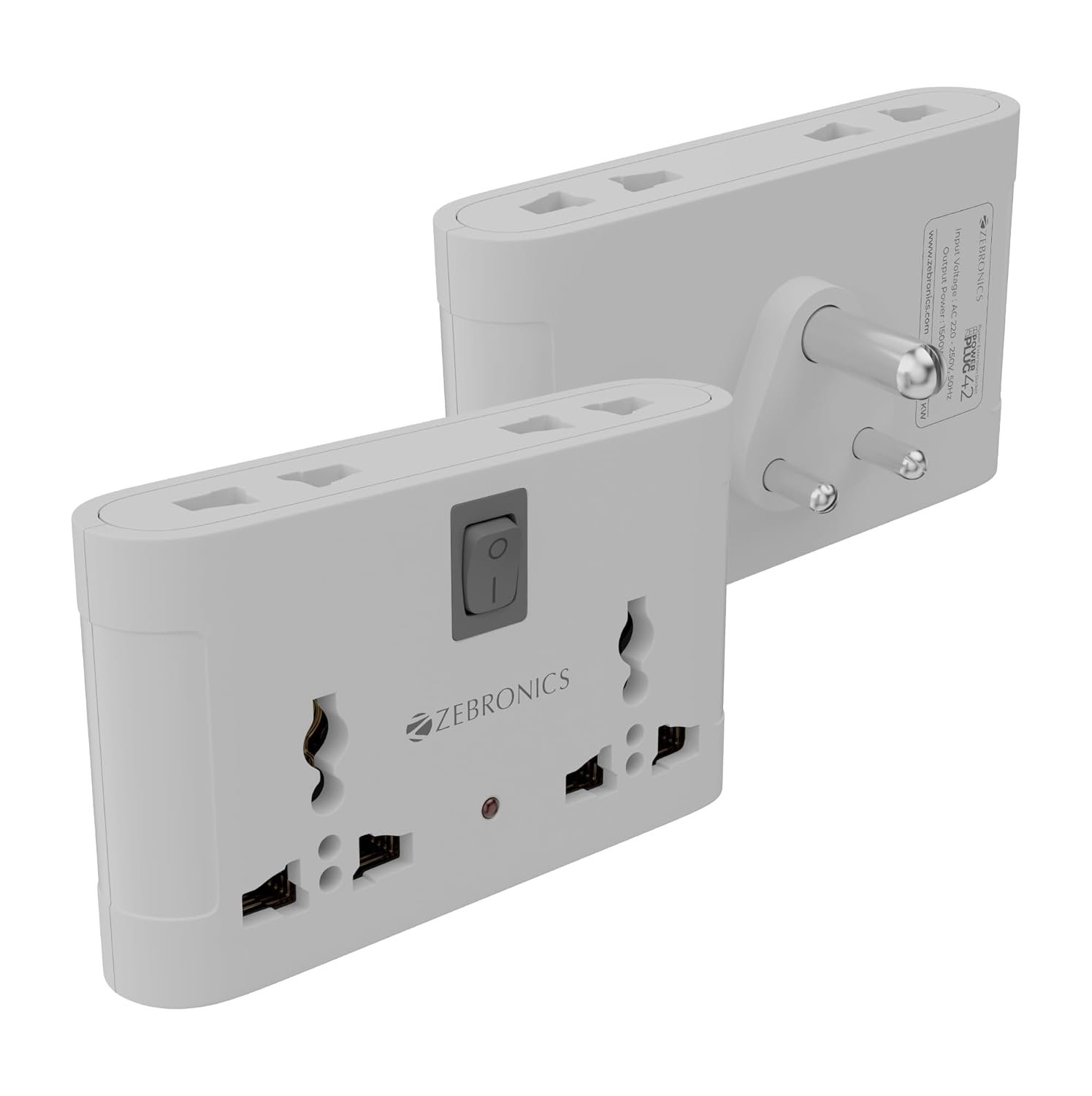 Zebronics Power Extension Socket, 1500 Watts, 6 Amps, 4X Universal Socket, LED Indicator, On/Off Switch, Compact & Durable Design, for Office and Home Appliances (Power Plug 42)