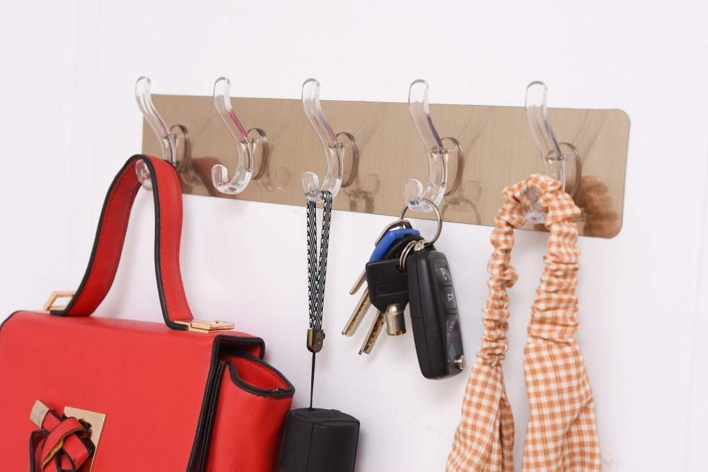 ZURATO 5 hooks self adhesive hook rail for homes, kitchens, offices, changing rooms and other places.Sticks on most smooth surfaces like marble, ceramic tiles, metal, mirror, glass.Load capacity up to 3kg.