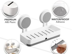 Nyarra Acrylonitrile_Butadiene_Styrene_ABS Soap Holder for Bathroom – Non-Drill Wall Mount Magic Sticker Self Adhesive Soap Stand for Bathroom with Removable Drain Tray – [NR-1335]