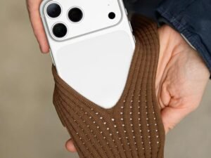 3D Knitted Phone Pocket Pouch with Strap for iPhone & Smartphones | Stretch Knit Mobile Sleeve Neck Pouch, Hands-Free Carry, Lightweight Unisex Phone Sling (Orange, Long (80CM))