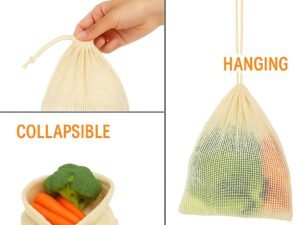 Cotton Net Vegetable & Fruit Storage Bags | Pack of 6 | Reusable Washable Grocery Mesh Bags with Strong Drawstring