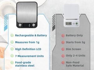 Digital Kitchen Weighing Scale, Rechargeable 5KG Food Weight Machine with Touch Button, Tare Function & High Precision Sensor for Cooking, Baking, Diet & Home Use