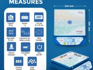 Eagle Digital Kitchen Weighing & Counting Scale with 30 kg Capacity and 1 g accuracy for Retail Shops, Kirana Stores, High Precision Weight Machine with Tare function, Counting (Blue, DLX-301)