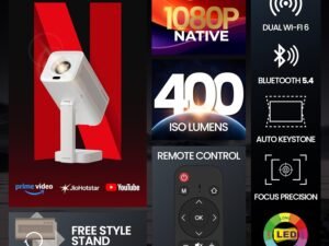 E GATE Atom 3X | Real Full HD 1080p Native, 13.0 Automatic Android Projector | 300 ISO | Rotatable Design | 4K HDR Support | Inbuilt Netflix, Prime | ARC-HDMI, USB, Wifi-6, BT, Screen Mirroring, Egate