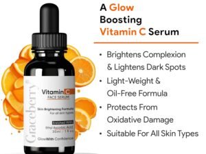 Graceberry Vitamin C Face Serum, Increases Skin’s Glow Instantly and Reduces Spots Overtime, Bright Complete Vitamin C Booster, 30 ml