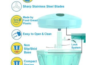 Handy Chopper 3 Blades 500ml – Green | Unbreakable Sharp S.S. Blades | Manual Food Chopper for Kitchen Use