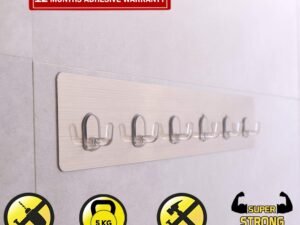 HOKIPO Magic Sticker Series Self Adhesive Plastic Bathroom/Kitchen Wall Hook Rail for Hanging Napkin, Utensils, Key (Silver) – Pack of 2