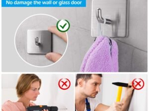 Jekoo Strong Adhesive Hooks, Heavy Duty Wall Hooks Towel Hooks for Hanging Waterproof Stick on Bathroom Kitchen Home Office 304 Stainless Steel – 4 Packs