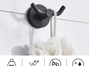 iSTAR Black Bathroom Hooks for Towels | Modern Double Robe & Towel Hook – Ideal as Bathroom Towel Holder, Shower Wall or Kitchen Hand Towel Holder