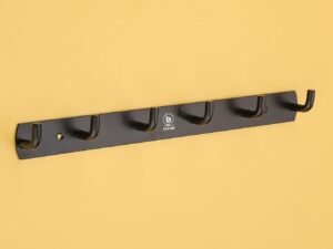 iSTAR Stainless Steel 6 Hook Rail with L-Shape Hooks for Walls of Bathroom/Kitchen–Hook Rail Bar for Clothes/Towel/Keys-Pack of 2 (6 Hooks,Black)