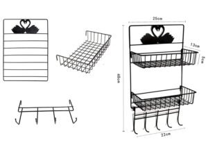 Lukzer 2-Tier Metal Multipurpose Storage Organizer Rack with Hooks – Wall Mounted Shower Caddy, Spice Rack & Refrigerator Side Shelf for Home, Kitchen & Bathroom Organization