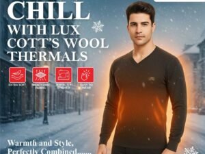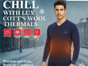 Lux Cottswool Men’s Half Sleeves V Neck Thermal Set