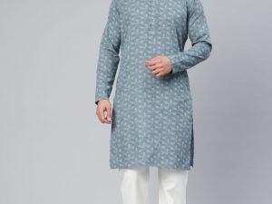 Majestic Man Men’s Cotton Regular Fit Casual Mandarin Collar Ethnic Motifs Printed Long Regular Kurta