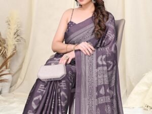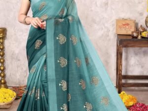 MIRCHI FASHION Women’s Cotton Blend Mix 2-Tone Foil Printed Saree with Blouse Piece