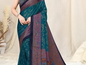 MIRCHI FASHION Women’s Stylish Chiffon Leaf Printed Saree with Blouse Piece