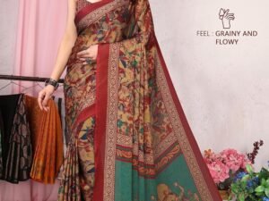 MIRCHI FASHION Women’s Stylish Chiffon Kalamkari Printed Saree with Blouse Piece