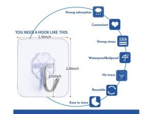 N/Q Premium Adhesive Hooks – Heavy Duty 13lb(Max) Transparent Reusable Seamless Wall Hooks With Stainless Steel for Kitchen, Towel, Bath, Ceiling, Office, Window – 10 Pack
