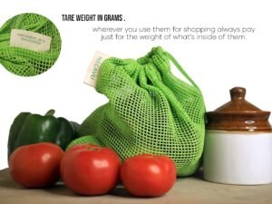 NECAVU 100% Cotton Set of 6 Fridge Drawstring Bags | Eco-Friendly Natural Vegetables Storage Mesh Net for Fridge | Multi-Purpose Cotton Mesh Bag (Neem Green)
